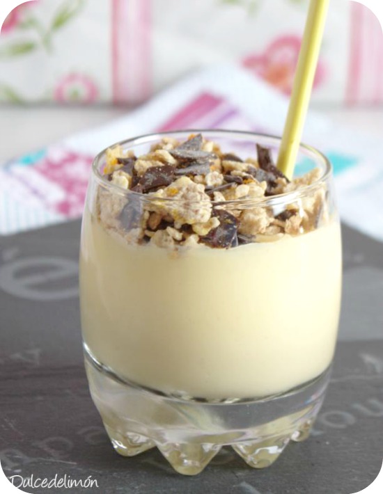 Y por ultimo la opción del vaso de naranja es la que igual mas se asemeja a un postre "normal" ya que es una especie de crema pastelera acompañada de cereales y chocolate.